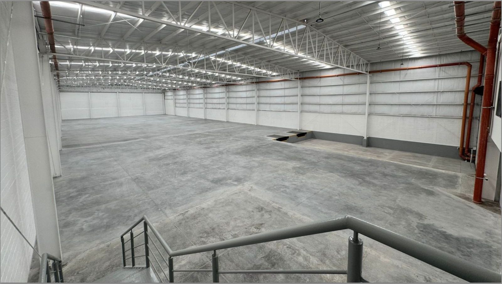 • Firme de concreto reforzado con acero, acabado pulido en el interior de bodega y 谩rea de andenes con un espesor de 15 cent铆metros resistencia 250 kg/cm2.
