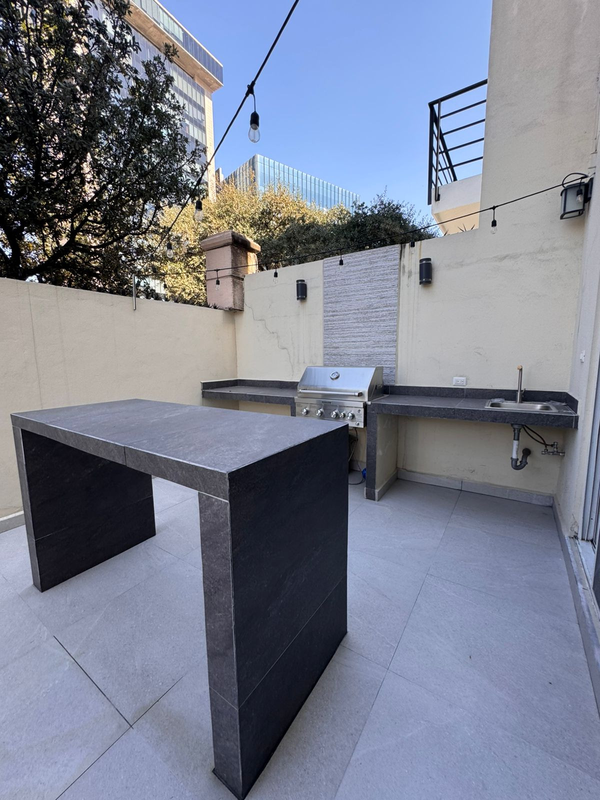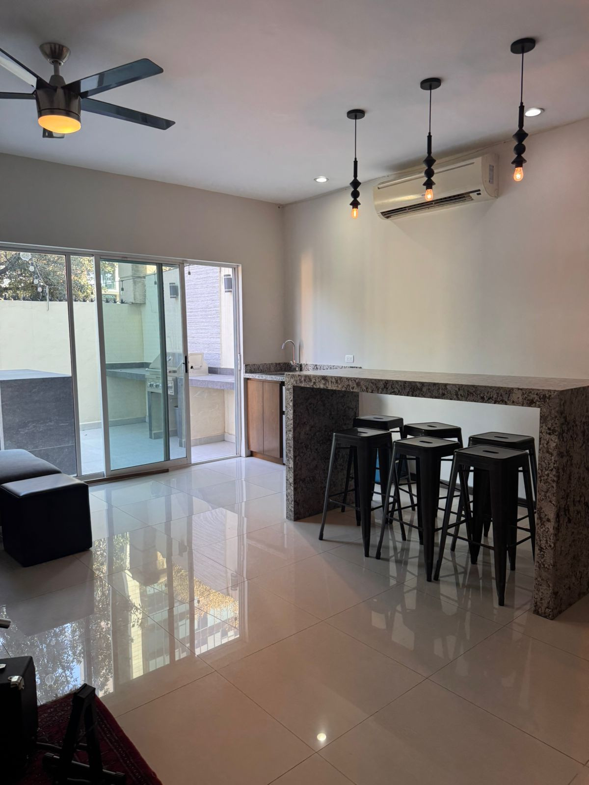Sótano área social con medio baño, patio con barra y asador