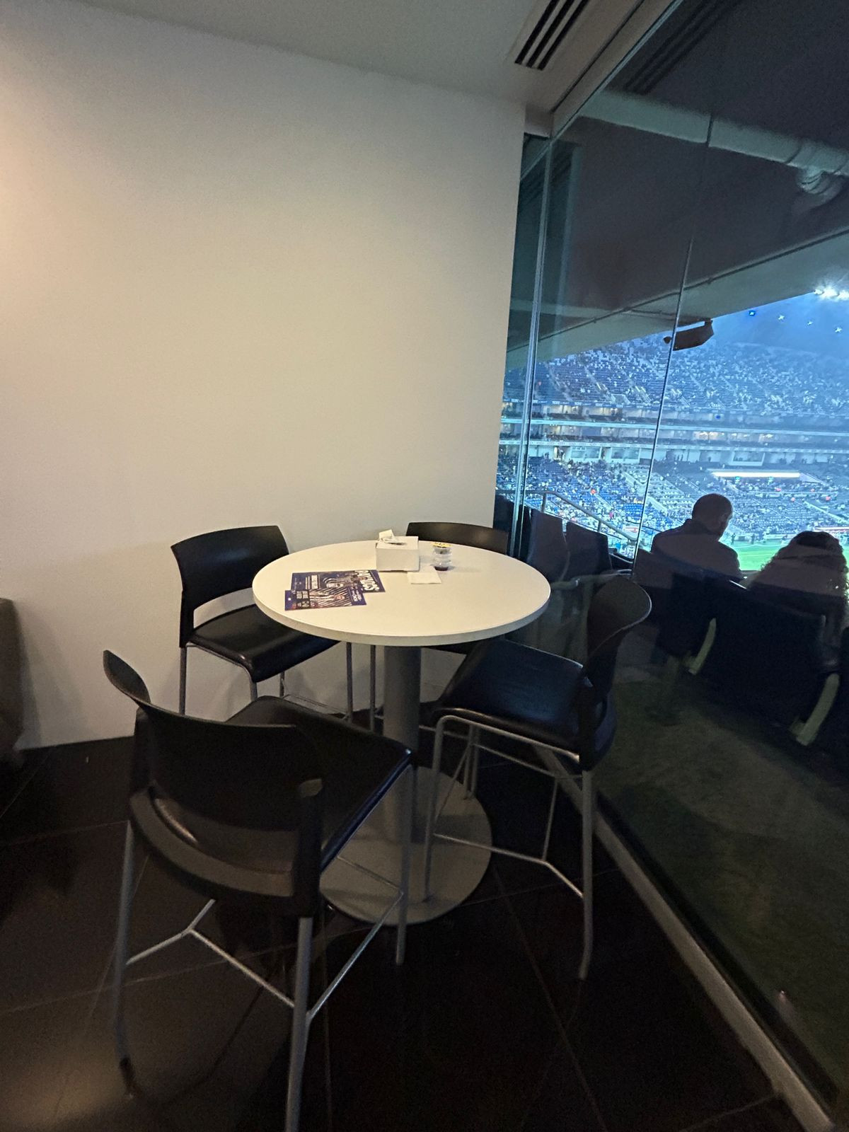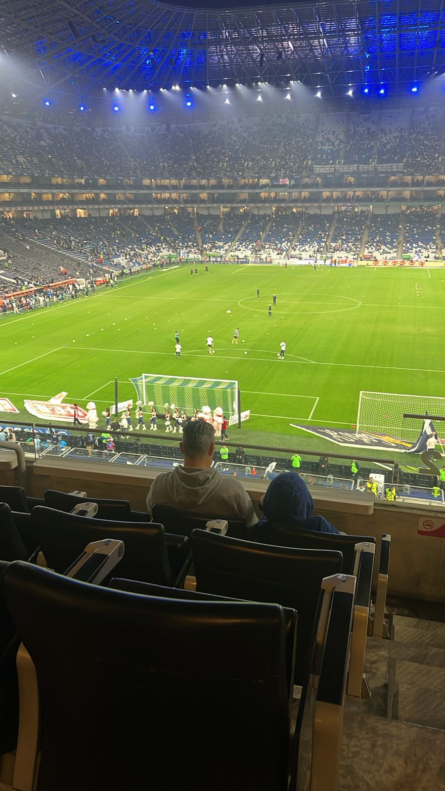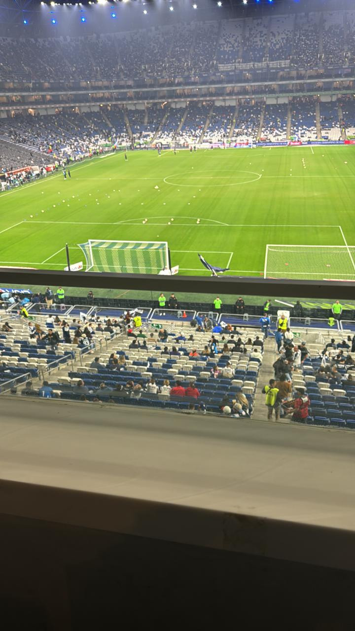 El palco está ubicado atrás de la portería ( abajo del Restaurante Azul).